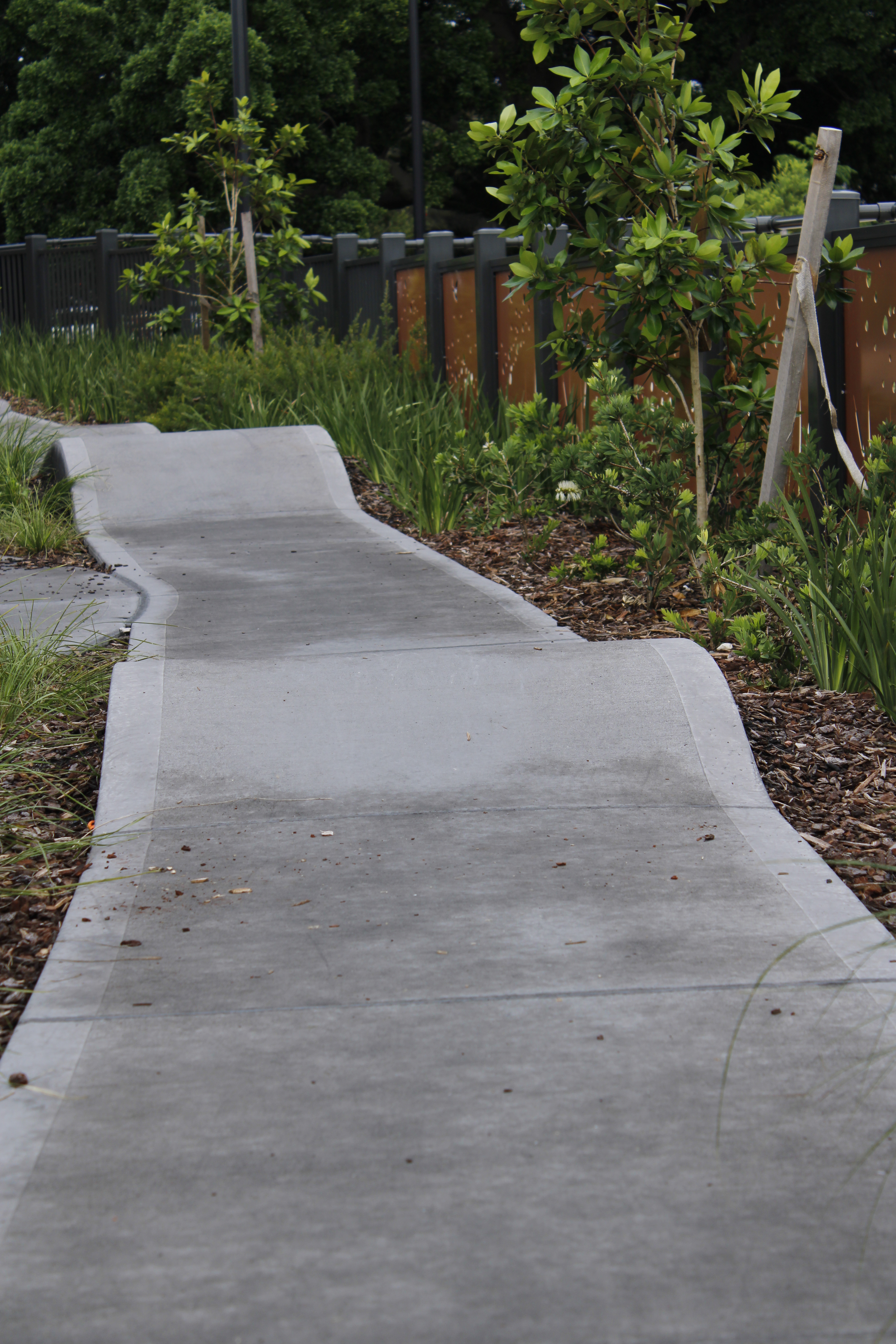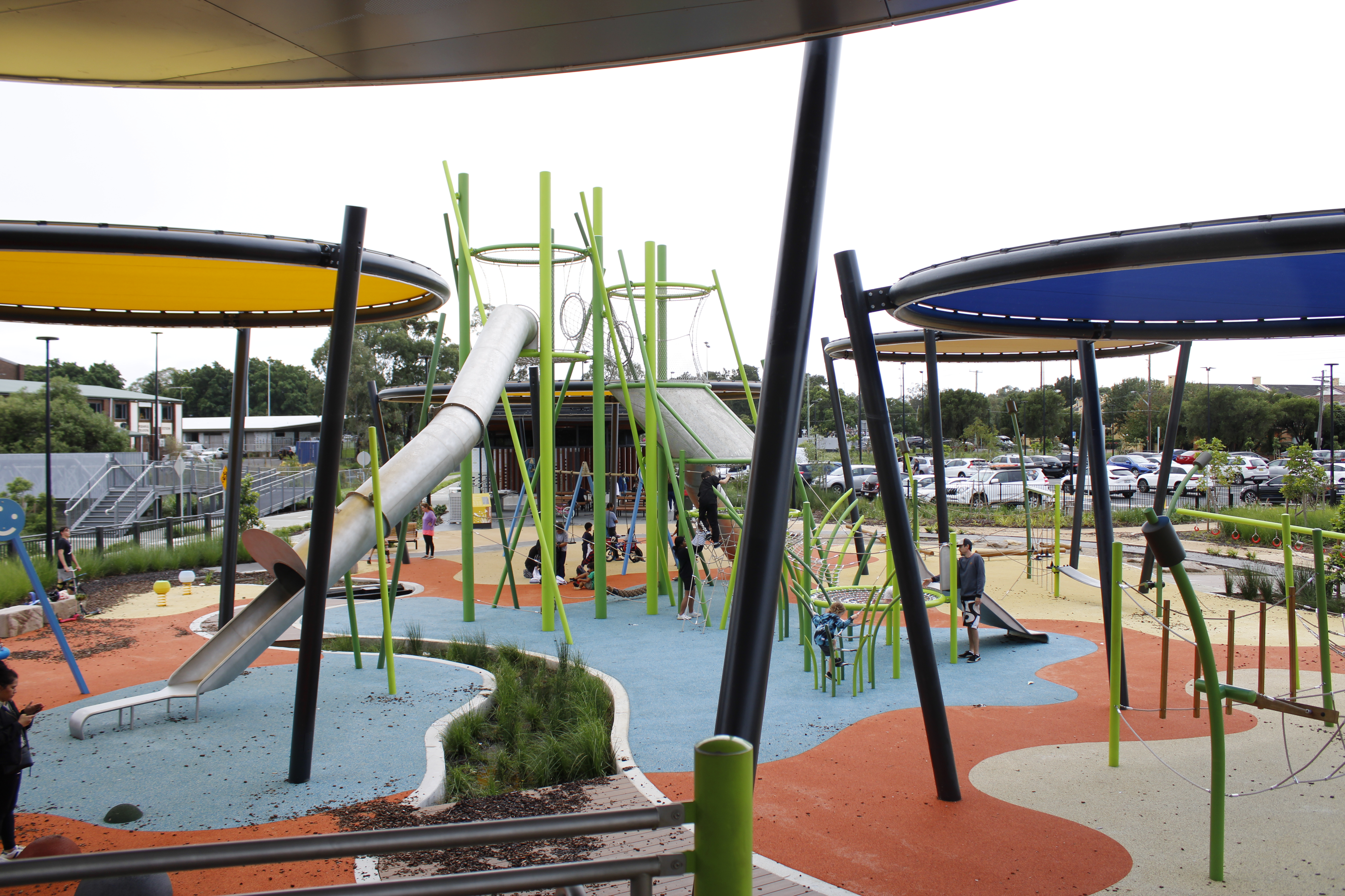 The area has been smartly designed by taking cues from the unique surroundings of the Roockdale wetlands. The design incorporates a range of water saving urban design principles and a large number of the diverse plantings will also help to reduce urban heat while providing shaded ambience to paths and the playground areas. Shade sales are also erect over the playground and bbq areas.