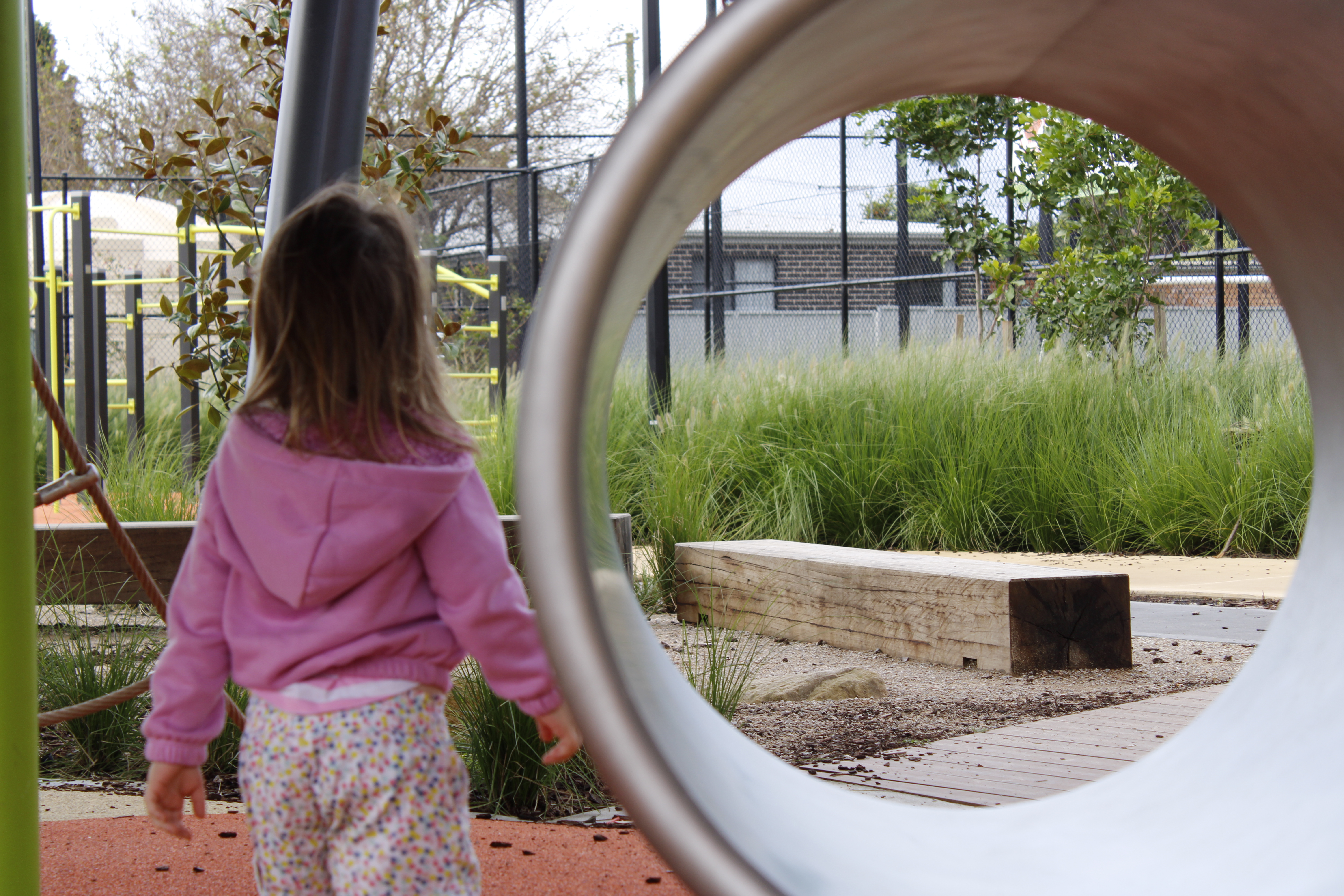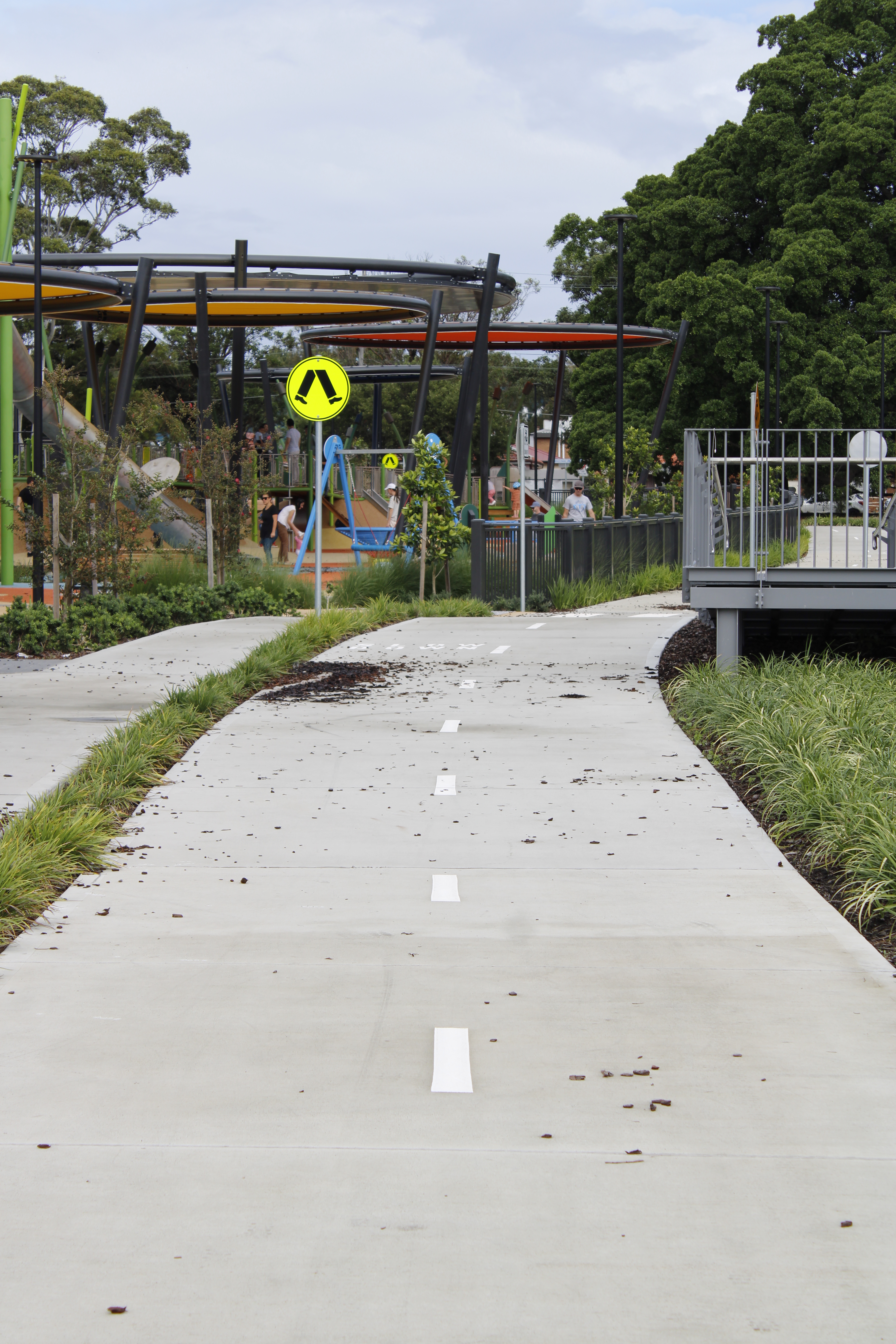 The playground has significant structural climbing equipment for the more adventurous children aswell as incorporating nature play with sandpits, a shared cycling and walking track, childrens bike path and pump track and again the adjacent skatepark.