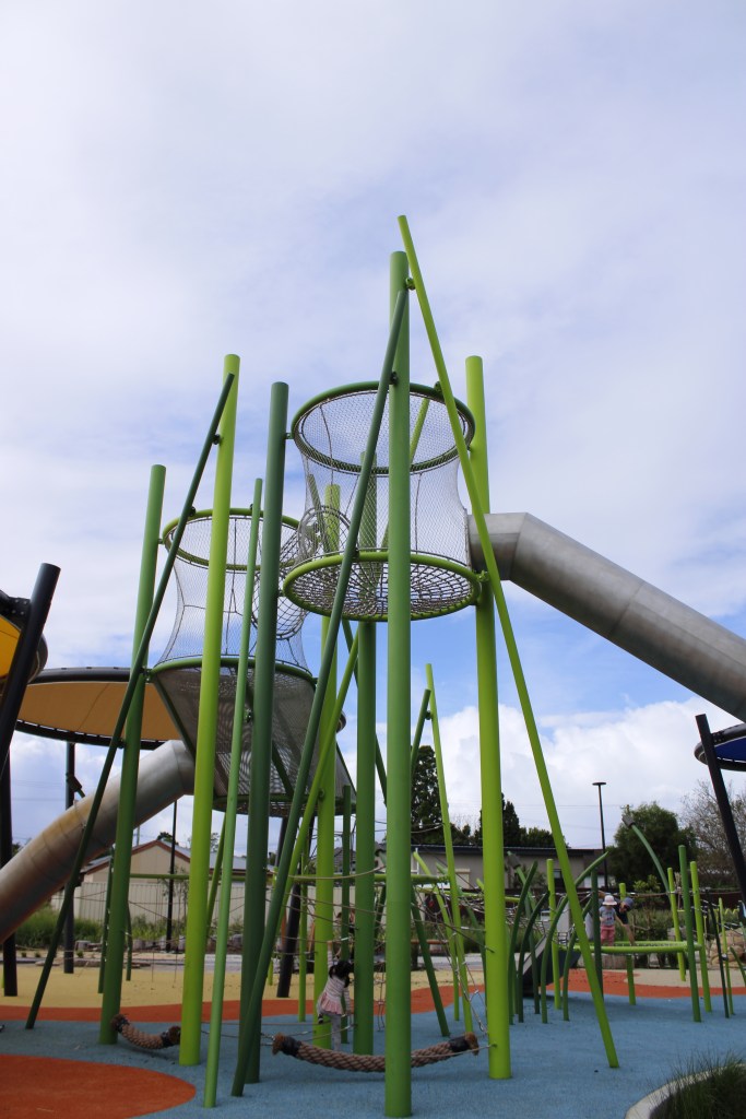 Elements of nature play are also significant throughout the park and with interpretive signage and artwork explaining the endemic landscape character, significant local flora and fauna and providing a historical timeline of the wetlands its hard not to appreciate how this smartly designed park the softens the grand play euiptment with its tranquil surroundings.