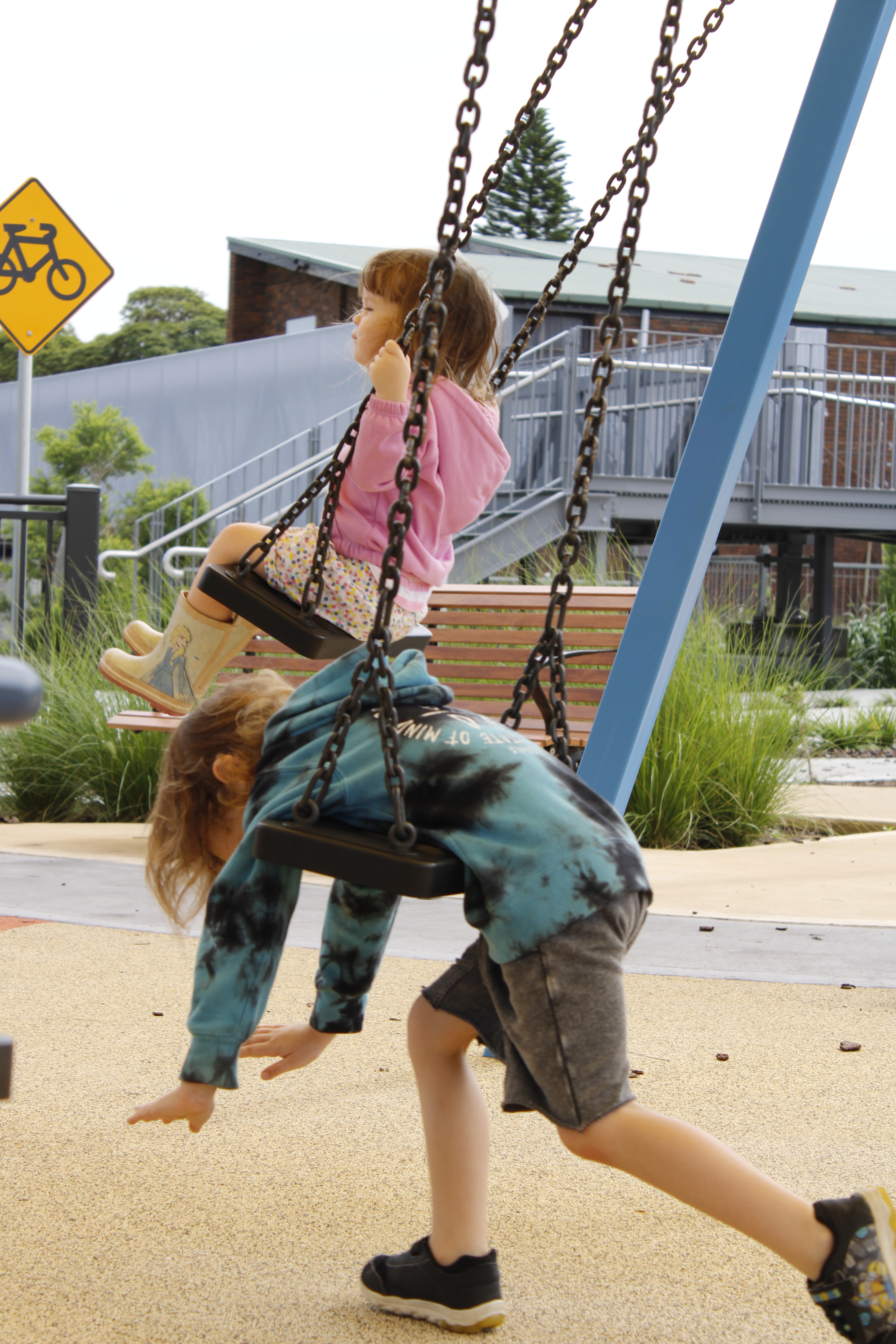 SUITABLE FOR: ALL AGES. This playground has really been designed to be all inclusive, with a toddler area, rubber floor surfaces for crawling babies, sandpits for toddlers aswell as large climbing structures and skate park for older school aged children. There is also a seniors exercise area that includes a range of euiptment for exercise.