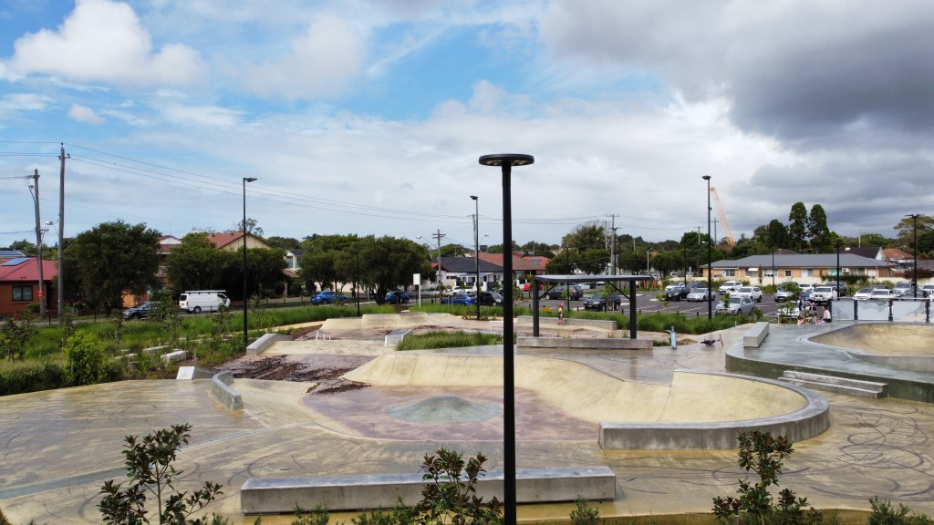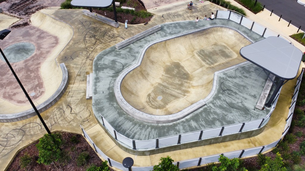 The park is surrounded not only by state of the art sporting fields but also a cycle track and small pump track and architectural designed toilet block. If this is not extreme enough for your tribe then why not give the adjacent skate park a run for its money.