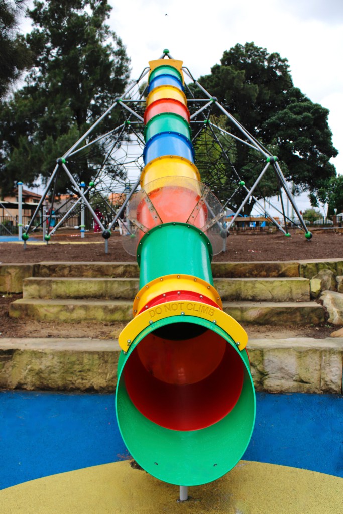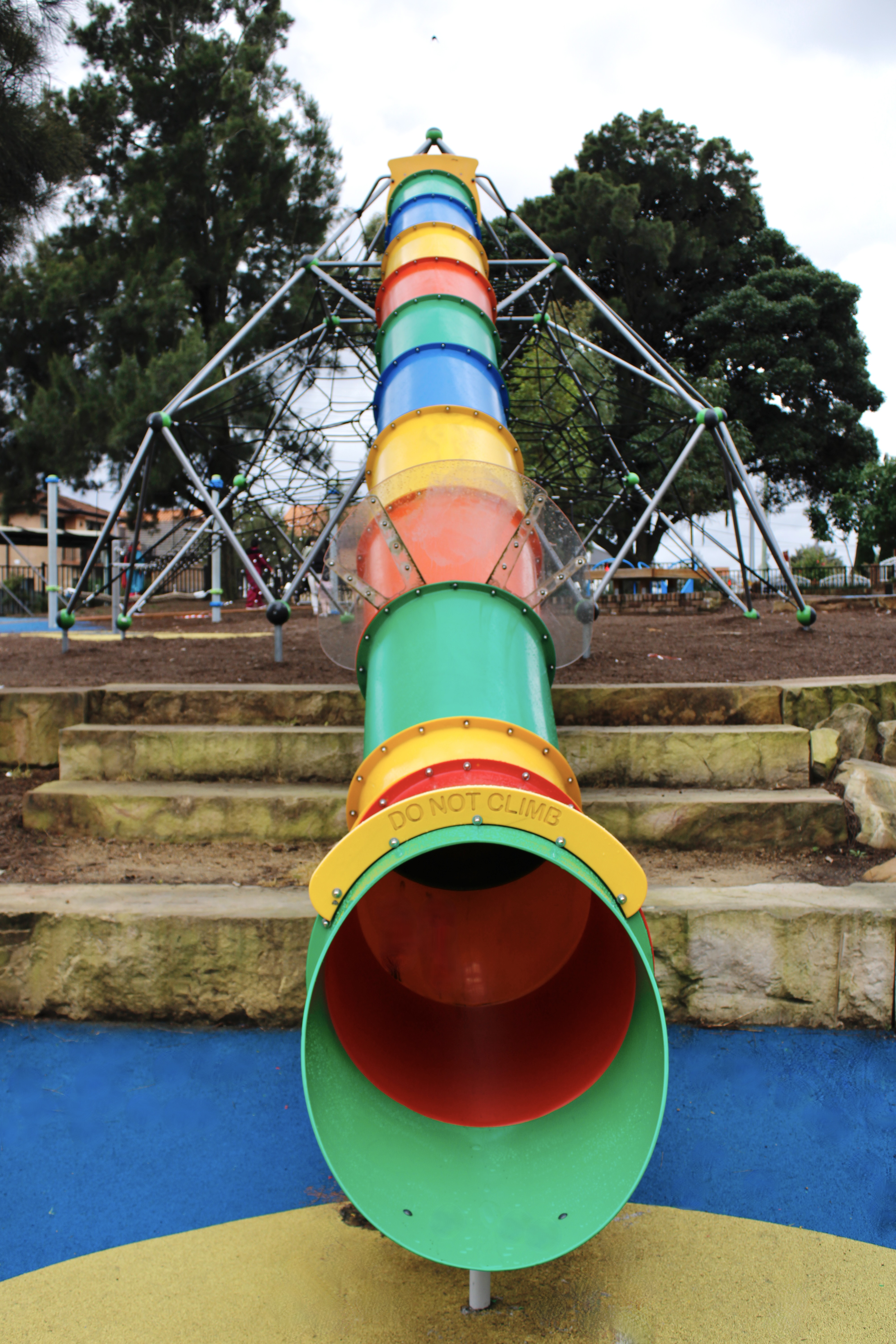 Standing proudly on the corner of Durham Street and Roberts Lane in Hurstville you will find this colourful busy park. Covering 3.173 Hectares of parklands with a large playground that has been designed with all ages and abilities in mind. The playground has been built amongst the natural tree landscape and adjacent to the sporting fields and train line.