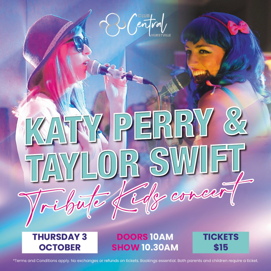 Club Central Hurstville for an unforgettable show at the *Katy Perry & Taylor Swift Kids Tribute Concert*! Get ready to sing your heart out and dance like there’s no tomorrow as we pay tribute to two of pop’s biggest stars.